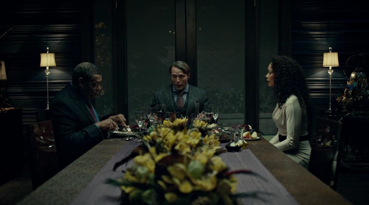 Jack Crawford y su esposa, Bella, visitan el hogar de Hannibal para disfrutar de una elaborada cena. Cuando Hannibal trae los platos con un foie gras diciendo que es cerdo, Bella trata de rechazarlo educadamente ya que no está de acuerdo con la forma en que se trata a los animales para hacer platos como aquél. Hannibal le asegura estar en contra de la crueldad a los animales, diciendo que es uno de los primeros signos de un sociópata. Le promete que adquiere sus productos de una "carnicería ética".